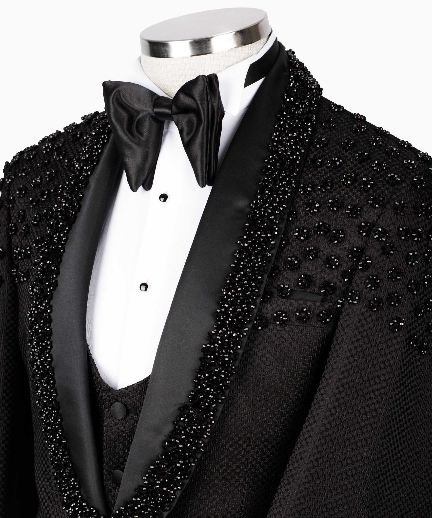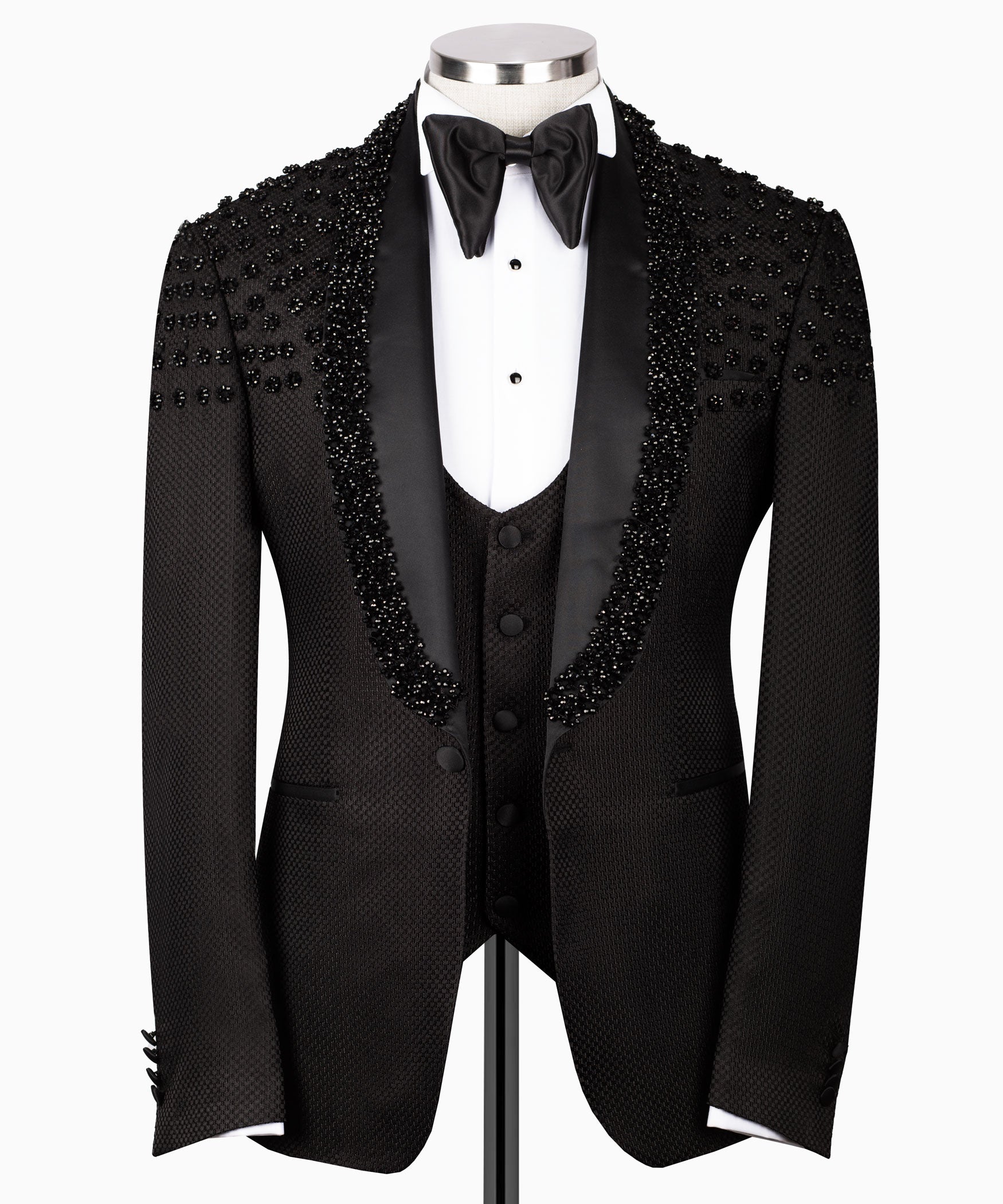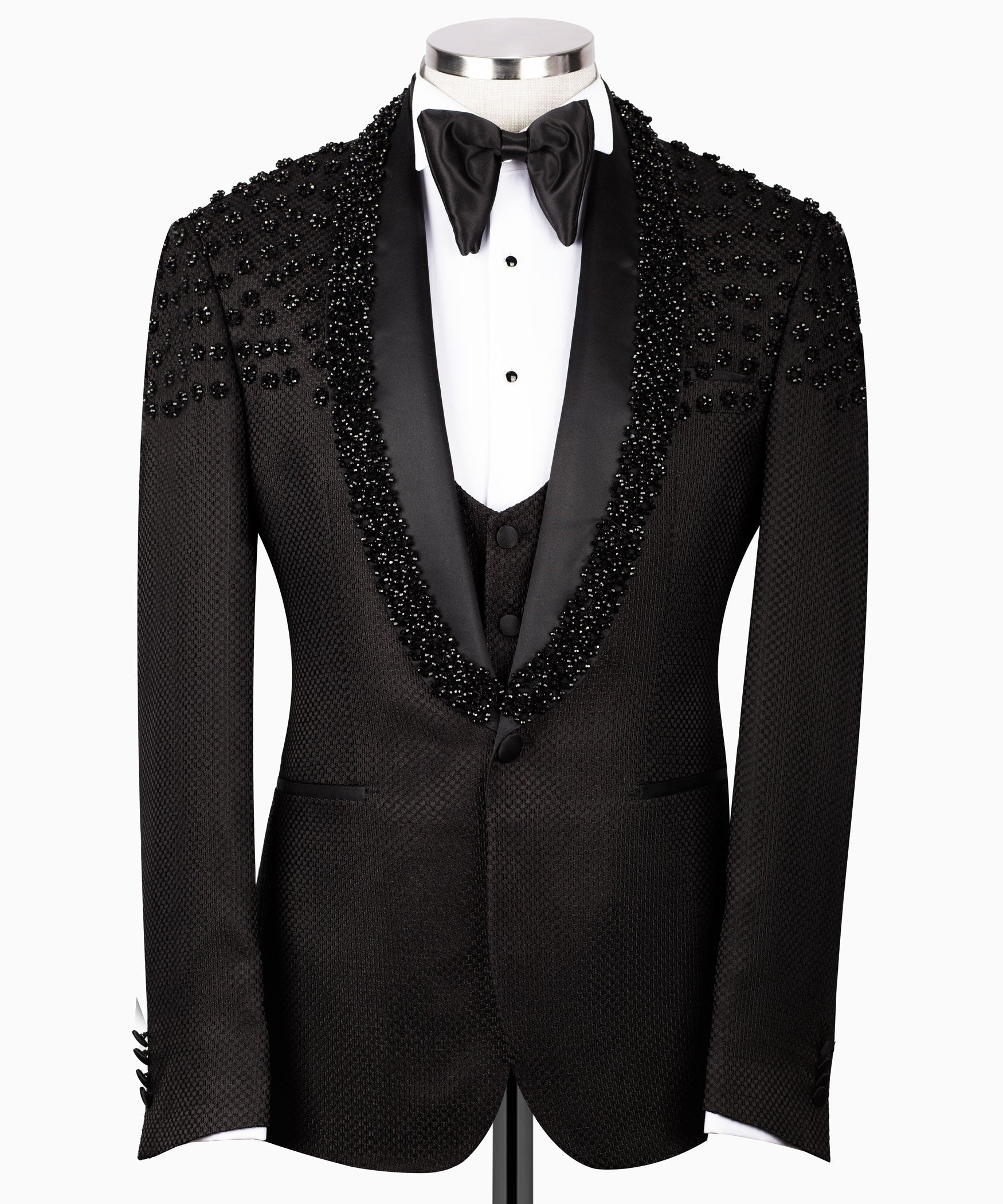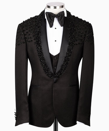 Make a Dazzling Statement with the Black Tuxedo Style Rhinestone Three-Piece Tuxedo