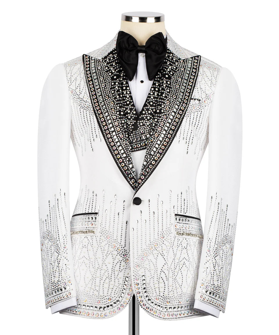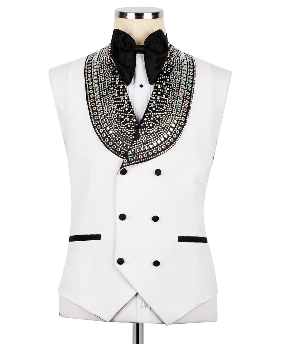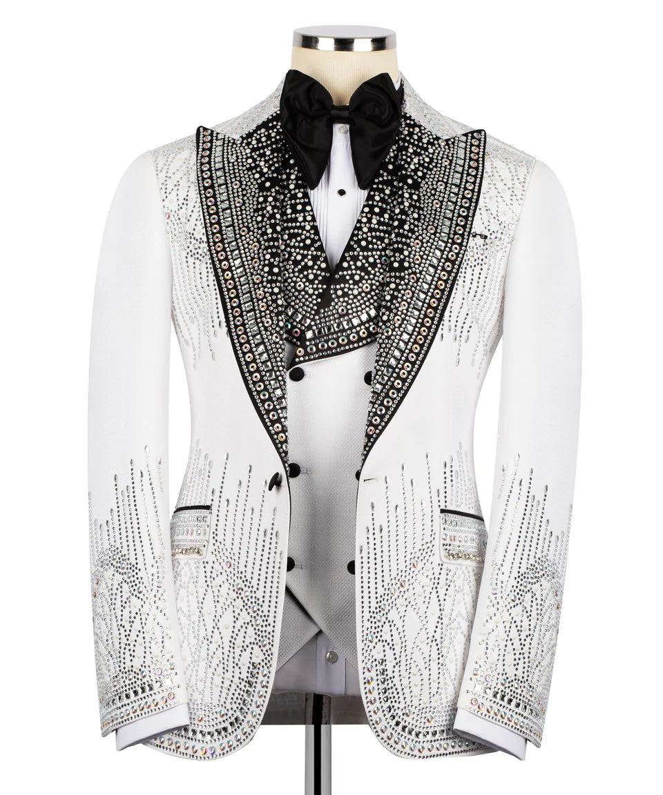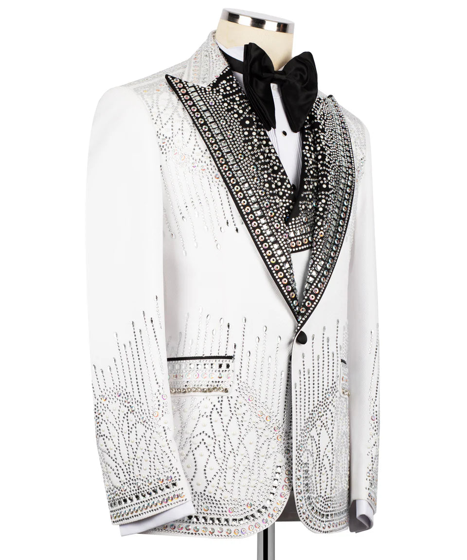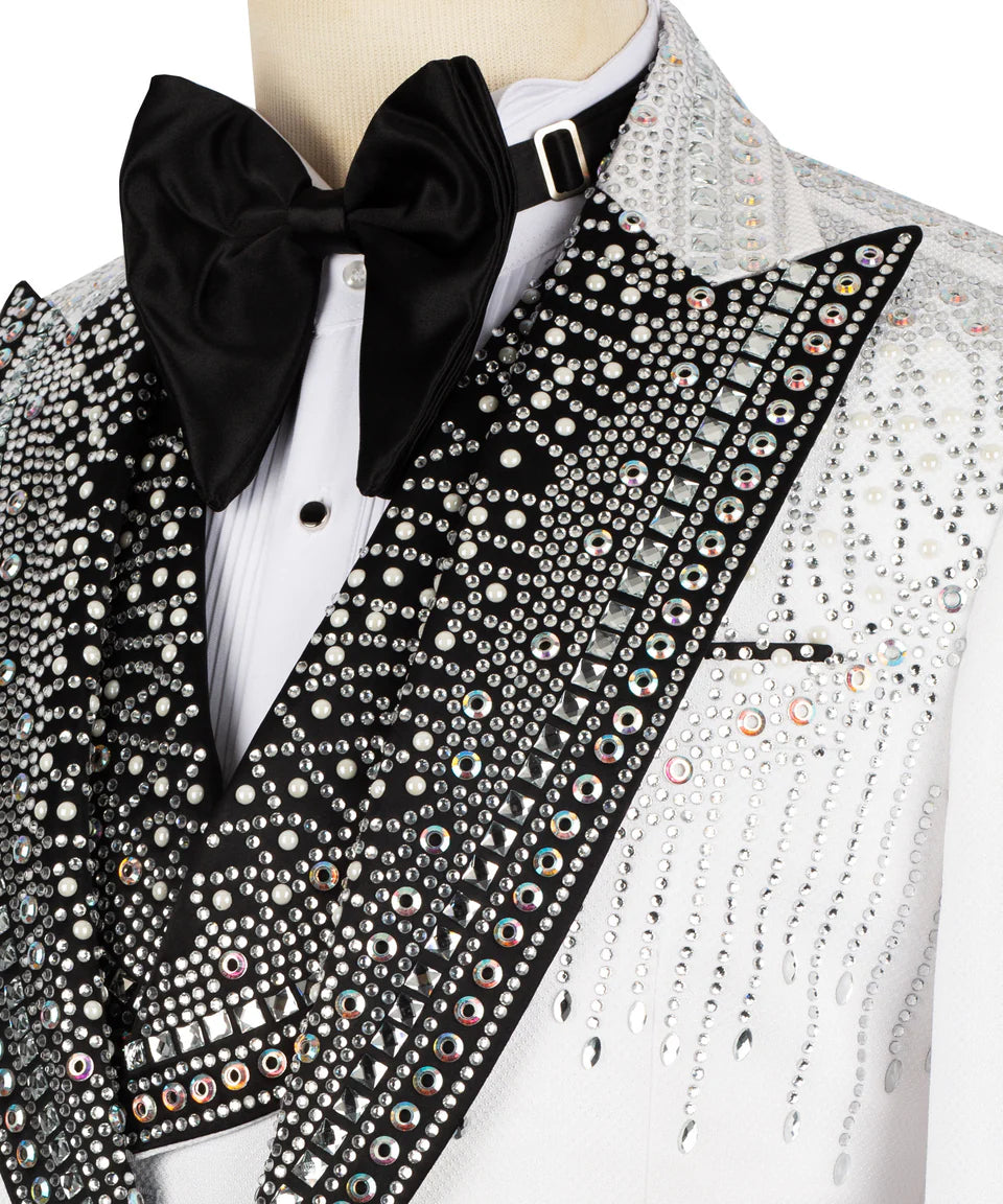 White Stone Embellished Tuxedo 3pcs | Black Tuxedo Style