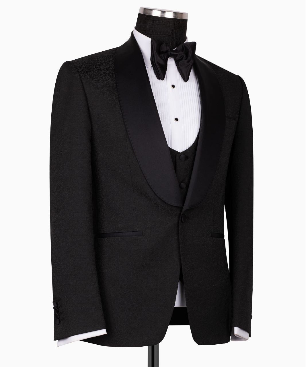 Bringing a contemporary twist to the classic tuxedo design, BlackTuxedoStyle perfectly combines elegance and comfort. Crafted from a luxurious silk-wool blend, this modern tuxedo features a relaxed fit, complete with stylish trousers and a double-breasted jacket adorned with silk accents.