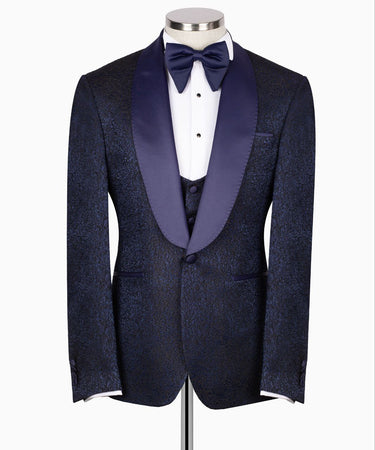 Navy Blue Shawl Lapel Navy Blue Tuxedo - Triple Tuxedo | Black Tuxedo Style