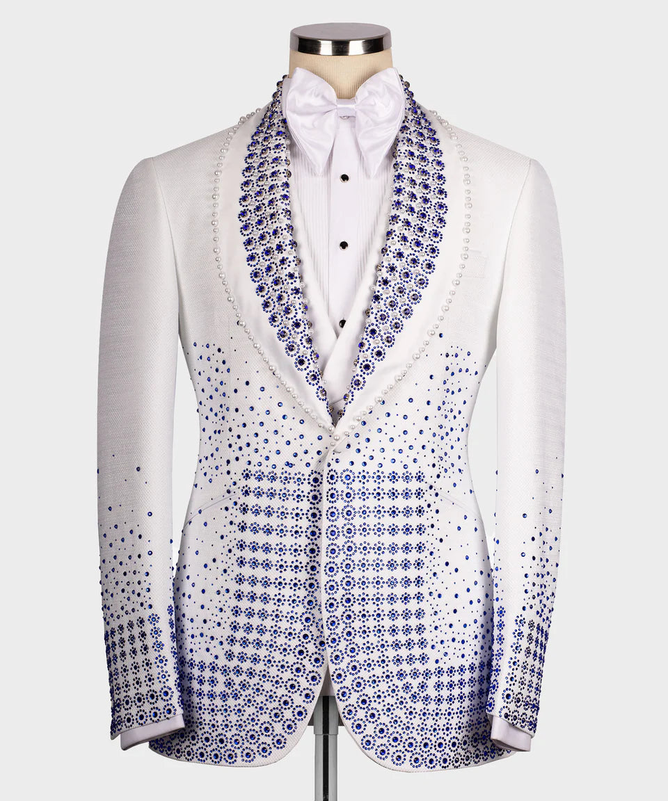 Black Tuxedo Style | Modern White Shawl Lapel Tuxedo with Blue Crystal Design - Costum Tuxedo | Black Tuxedo Style Black Tuxedo Style | Modern White Shawl Lapel Tuxedo with Blue Crystal Design - Costum Tuxedo | Black Tuxedo Style