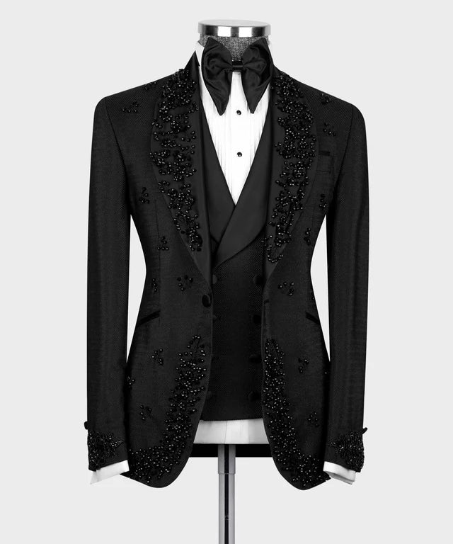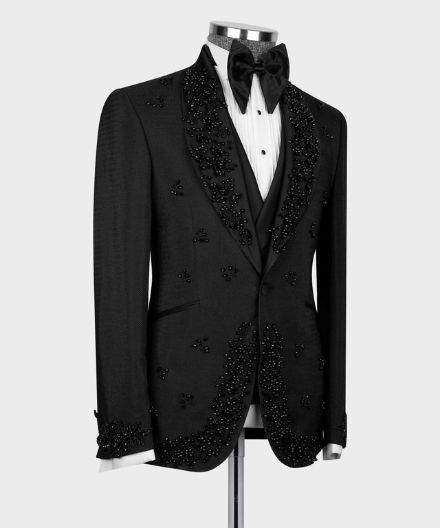 Black-Crystal Jewelried Special Tuxedo - Costum Tuxedo | Black Tuxedo Style