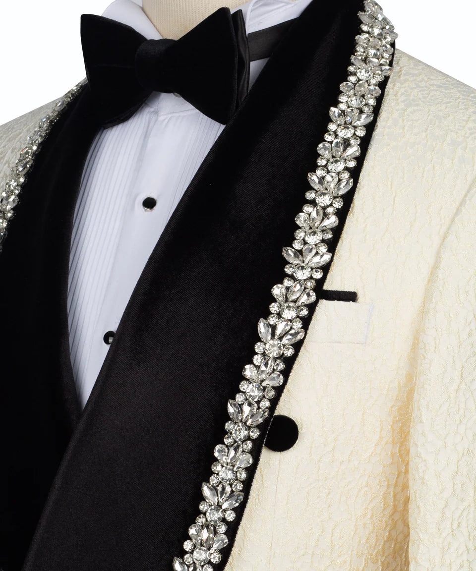 Cream Beige Crystal Embellished Tuxedo | Black Tuxedo Style