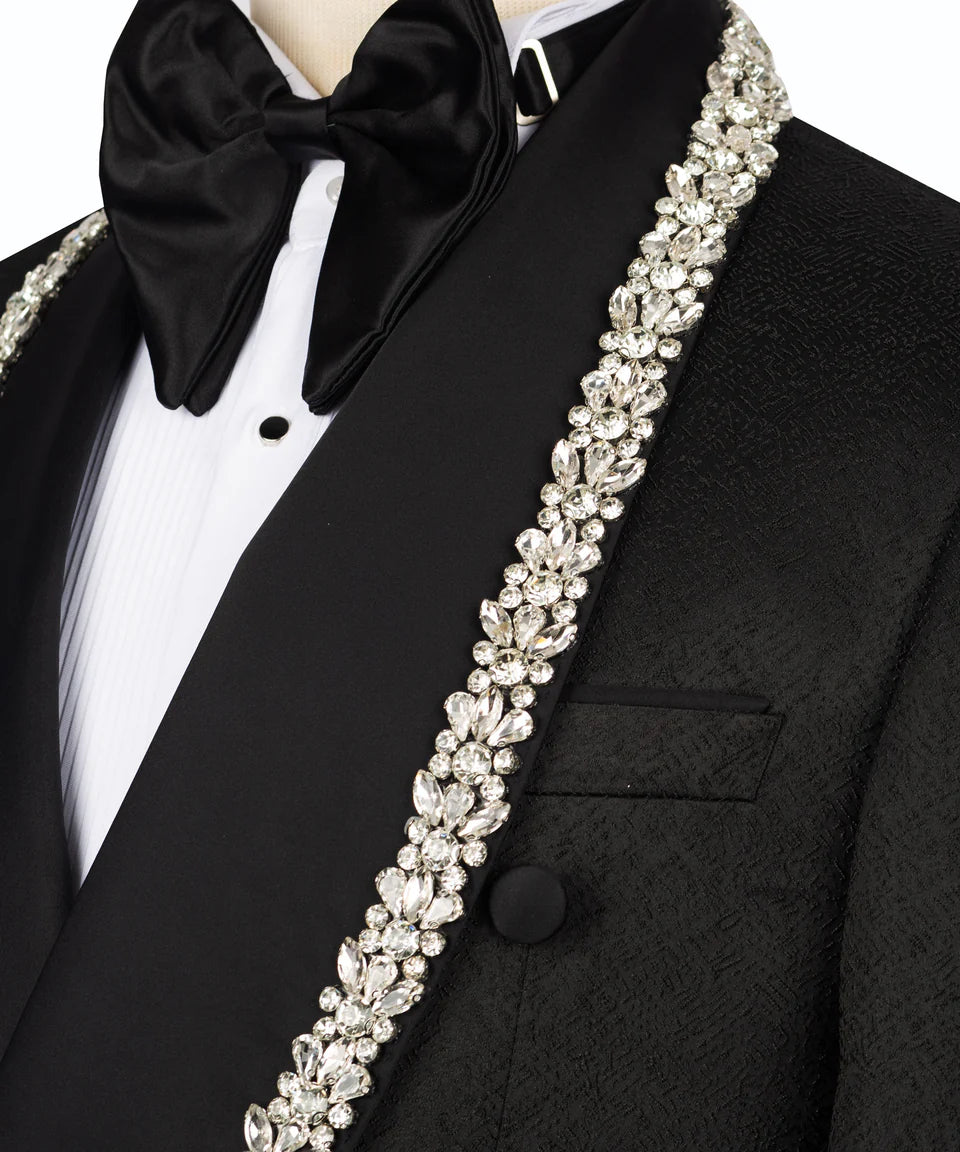 Black Tuxedo with Crystal Stone Embellishments | Black Tuxedo Style