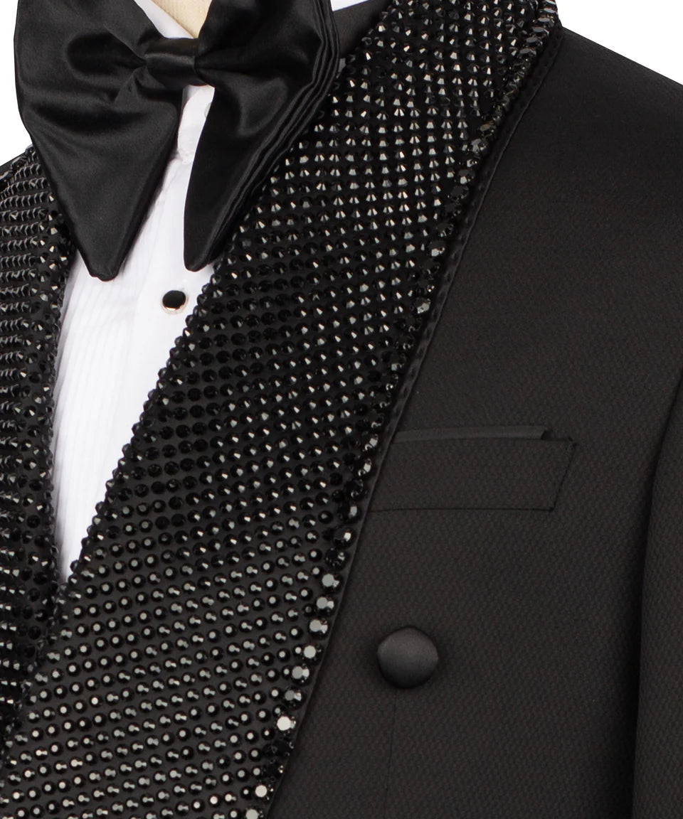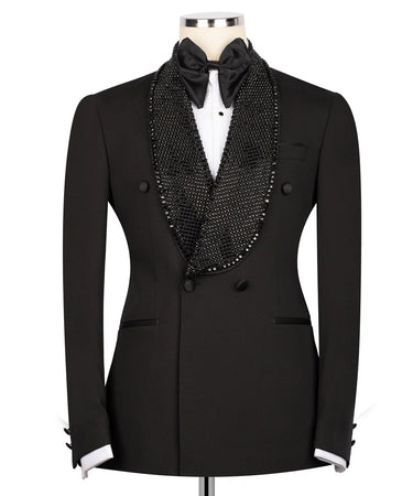 Double Breasted Black Lapel Embellished Tuxedo | Black Tuxedo Style