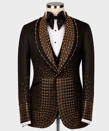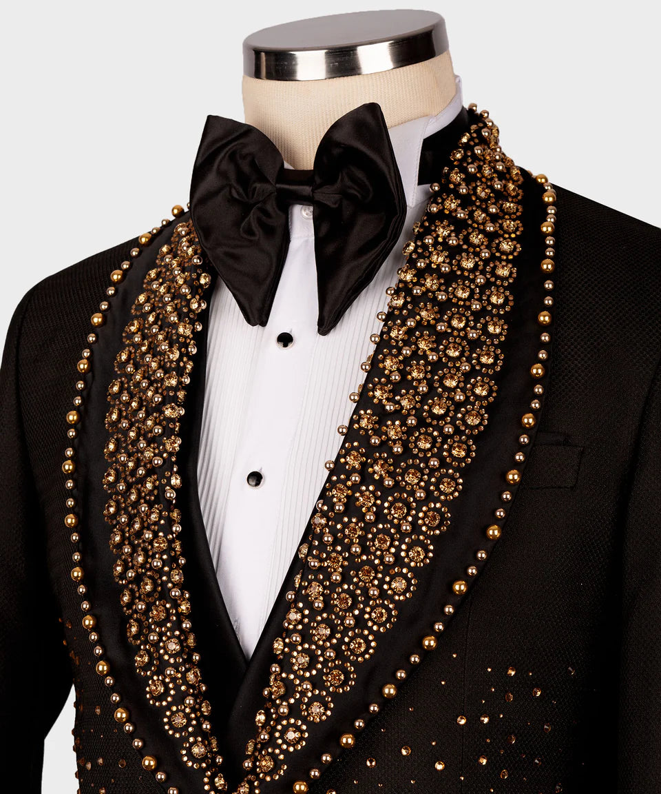 Gold Crystal Embellished Black Tuxedo | Black Tuxedo Style