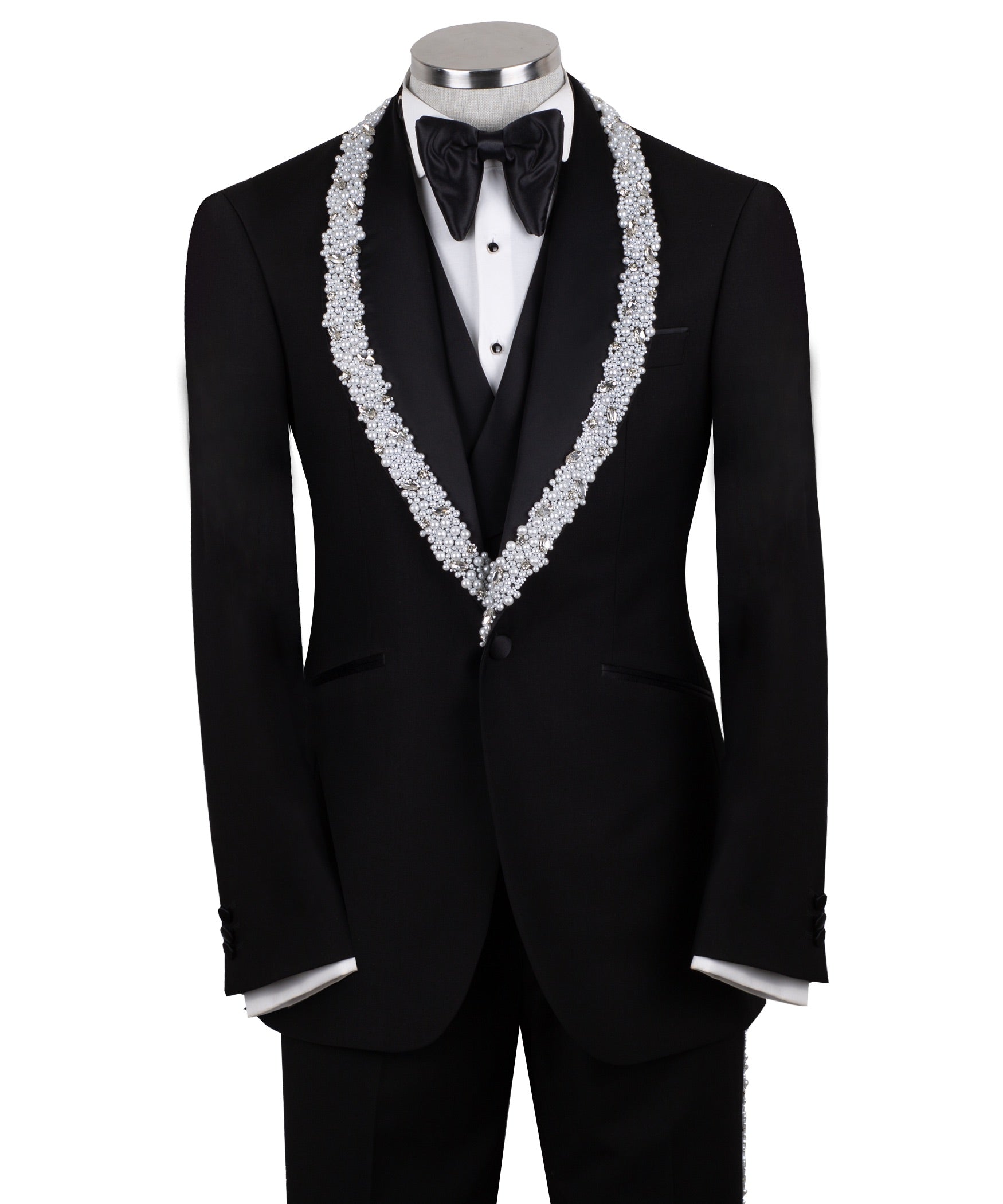 Moonlit Pearl: Hand-Detailed 3-Piece Tuxedo Set