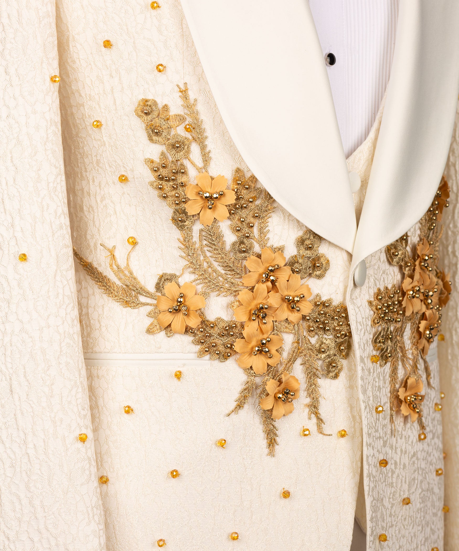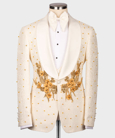 ESMOQUIN CREMA - DORADO CON ESTAMPADO DE FLORES