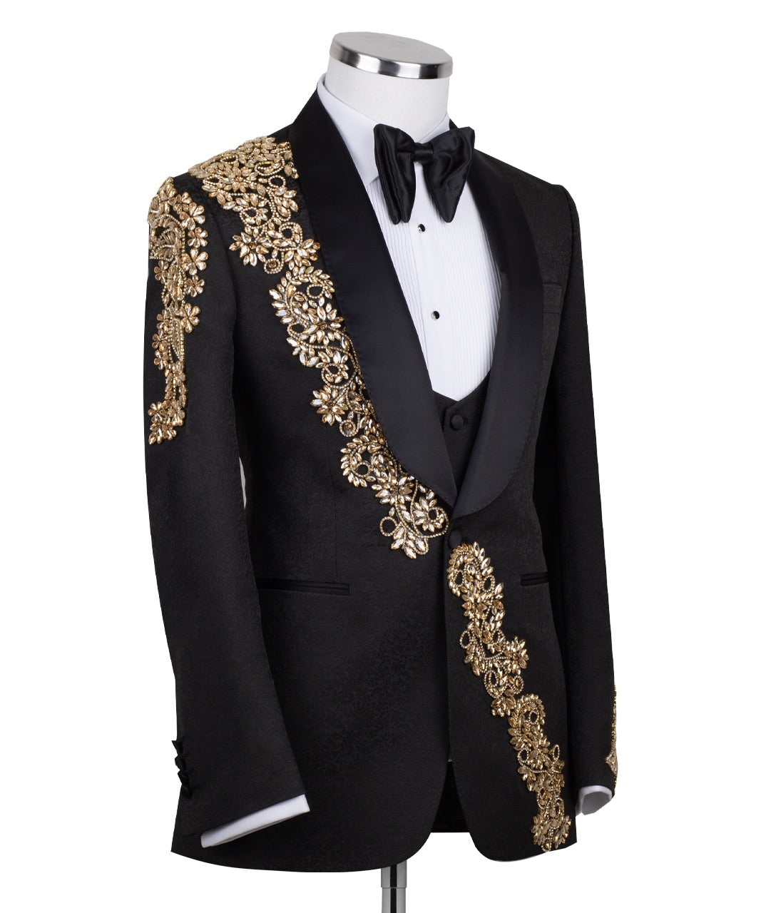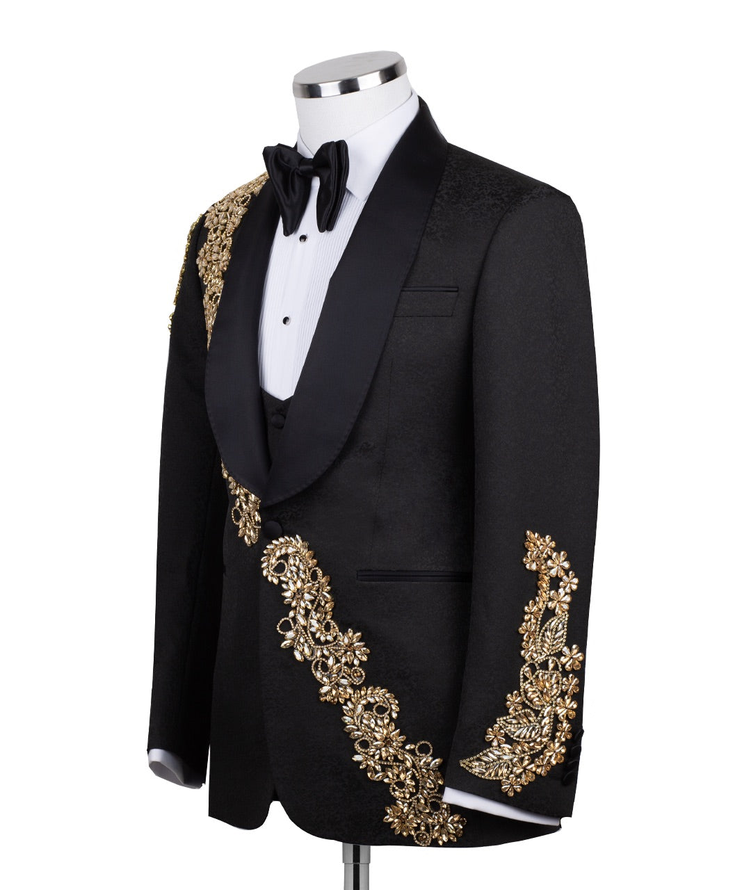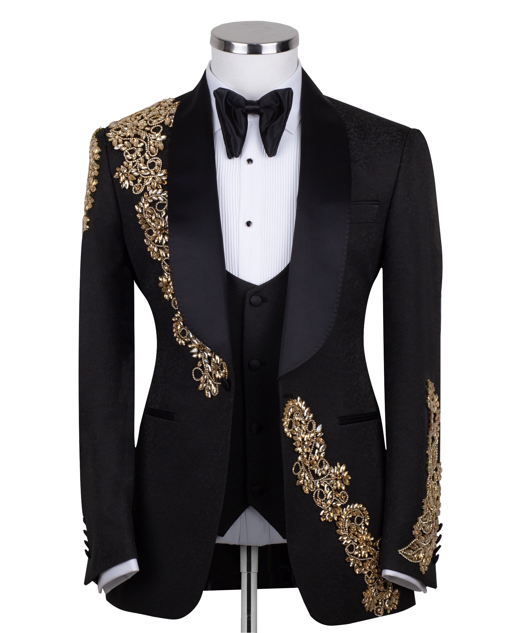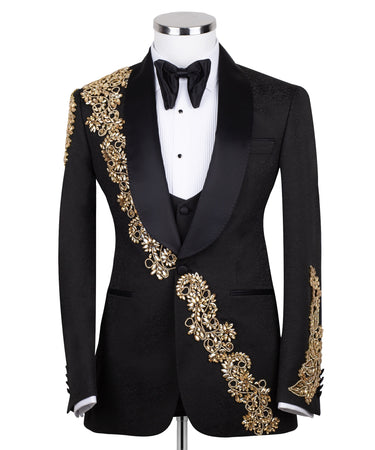 Golden Harmony: Hand-Detailed 3-Piece Tuxedo Set