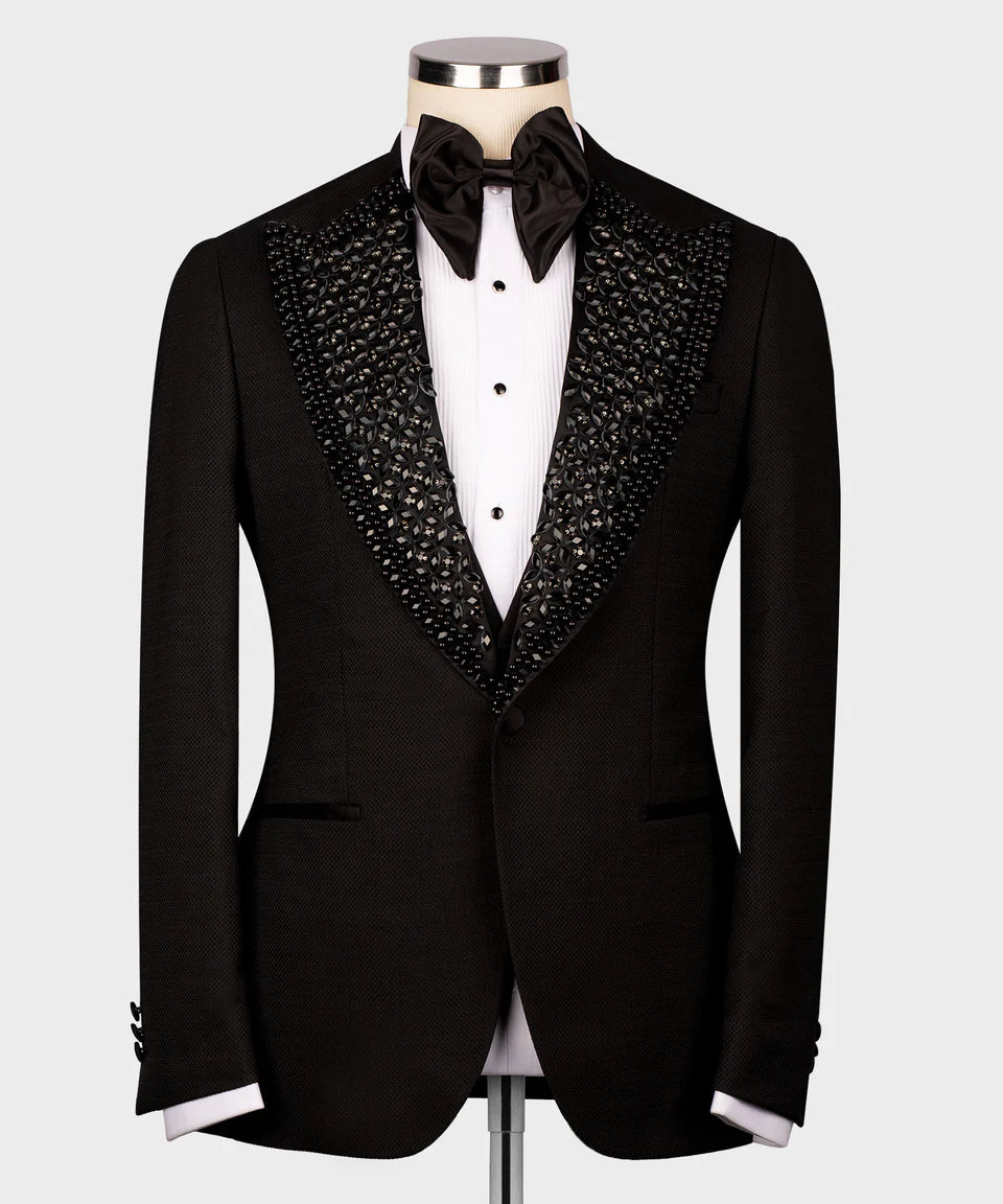 Black Tuxedo Style | Elegant Black Shawl Lapel Tuxedo with Crystal Detailing - Costum Tuxedo | Black Tuxedo Style