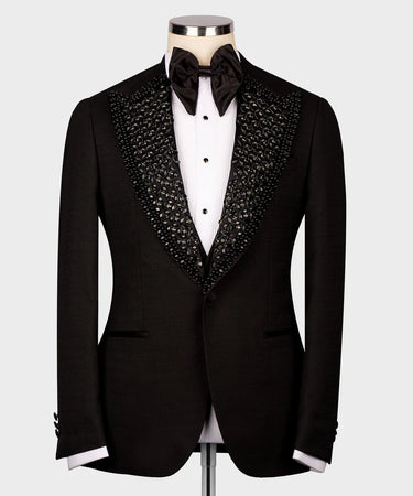 Black Tuxedo Style | Elegant Black Shawl Lapel Tuxedo with Crystal Detailing - Costum Tuxedo | Black Tuxedo Style Black Tuxedo Style | Elegant Black Shawl Lapel Tuxedo with Crystal Detailing - Costum Tuxedo | Black Tuxedo Style