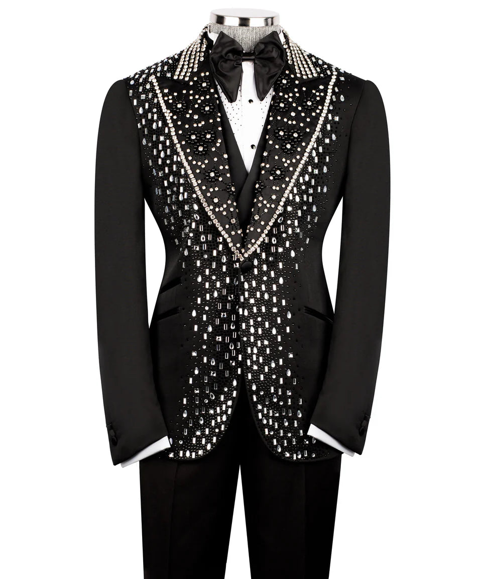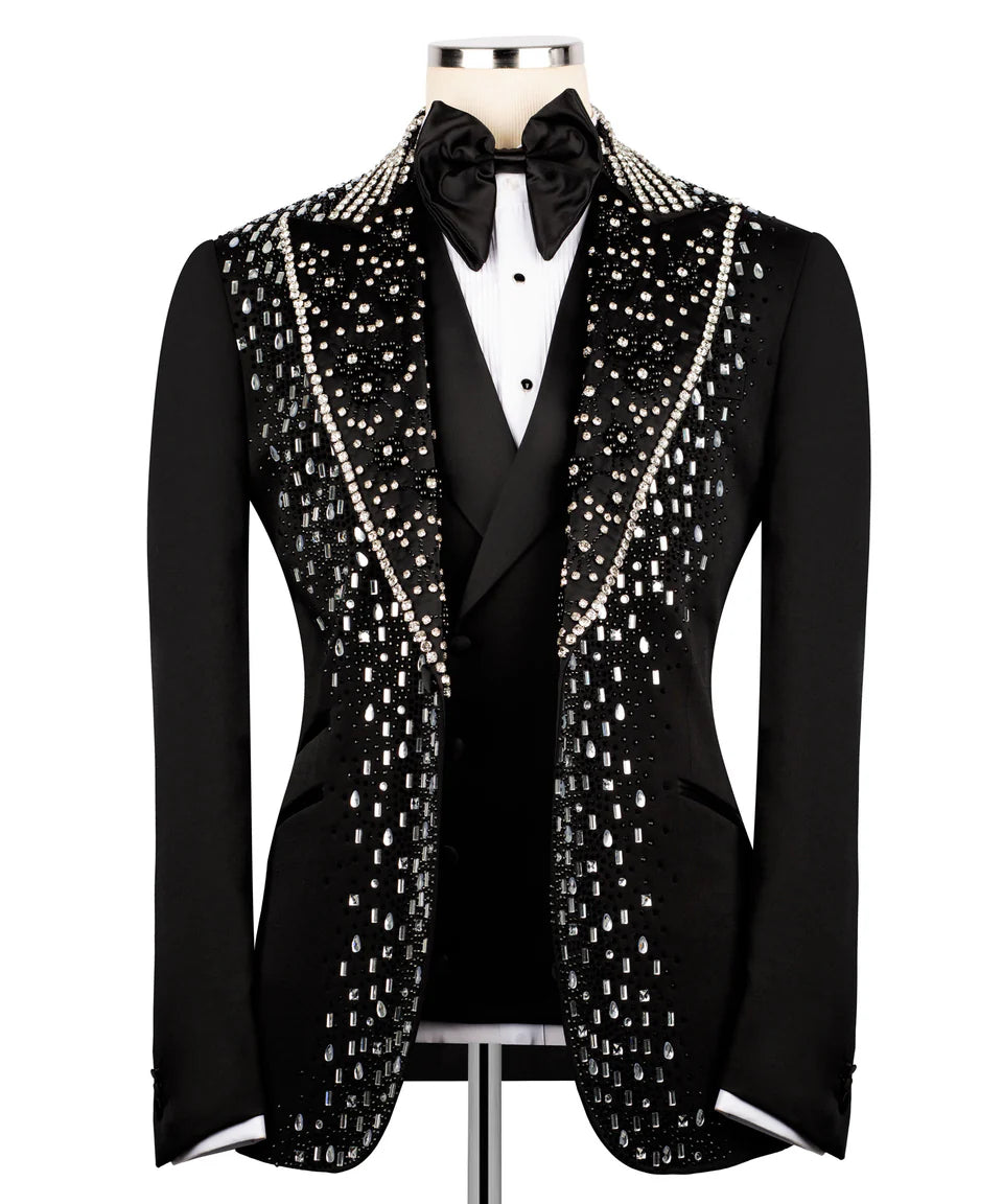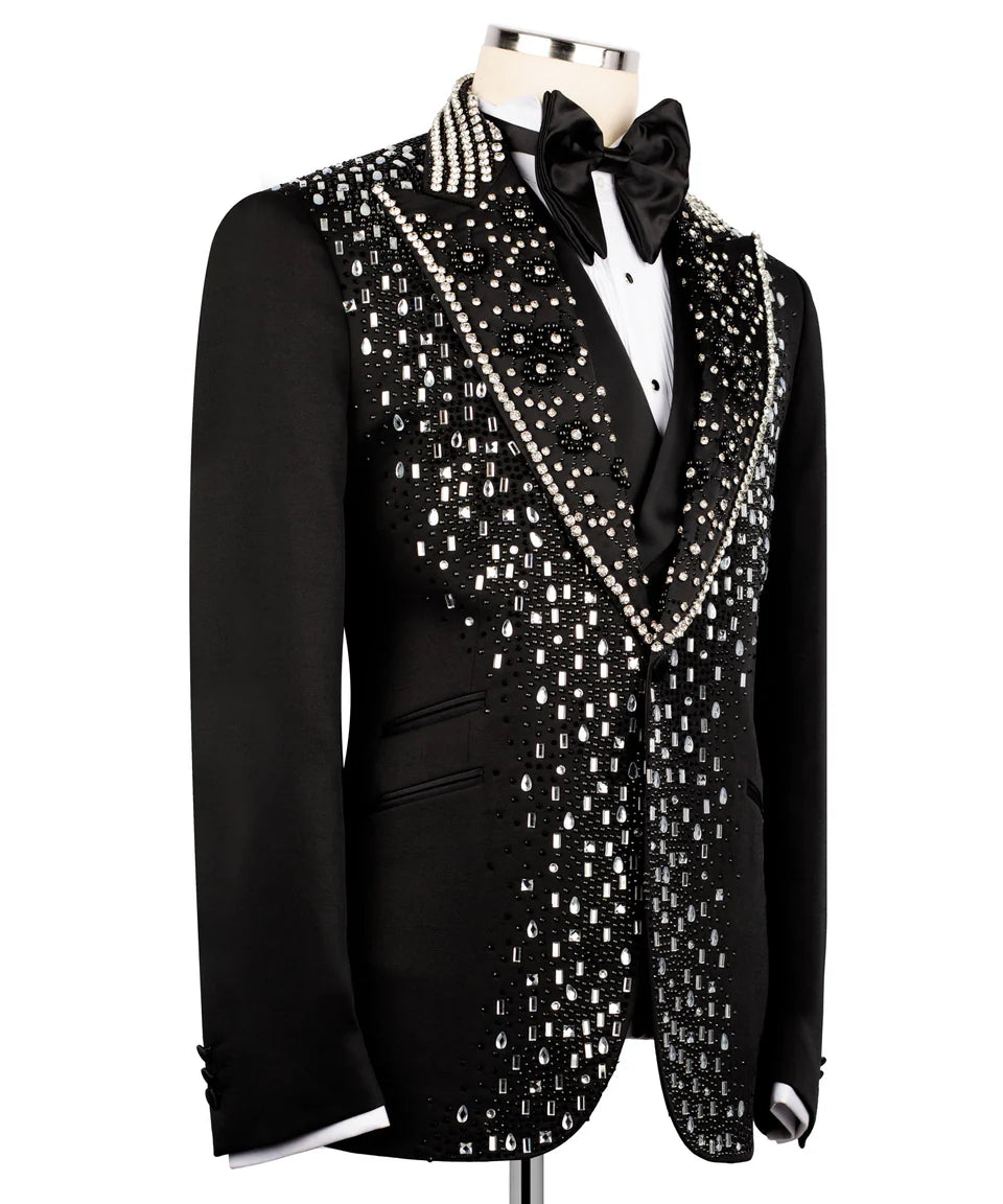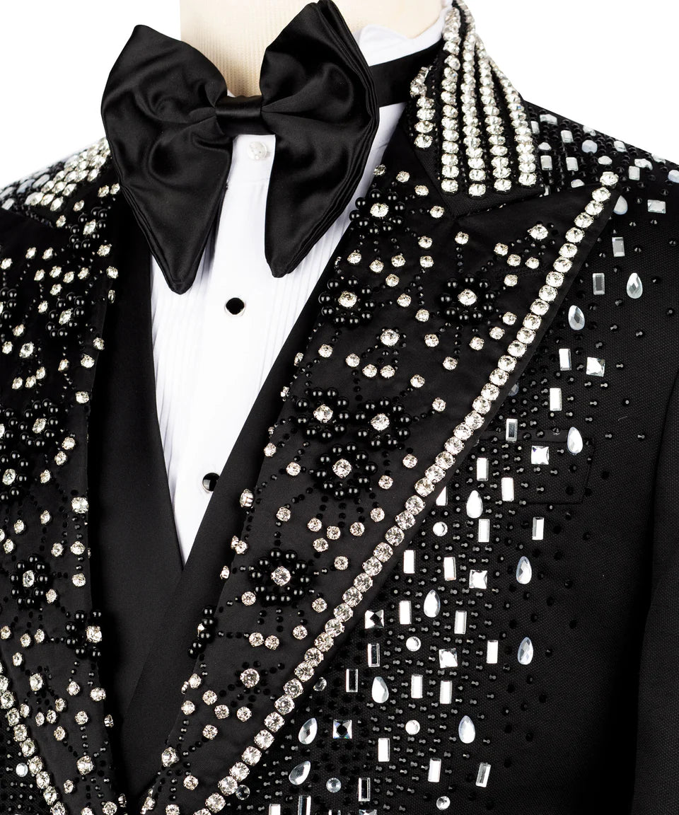 Black Tuxedo with Crystal & Black Stone Embellishments | Black Tuxedo Style - Costum Tuxedo | Black Tuxedo Style