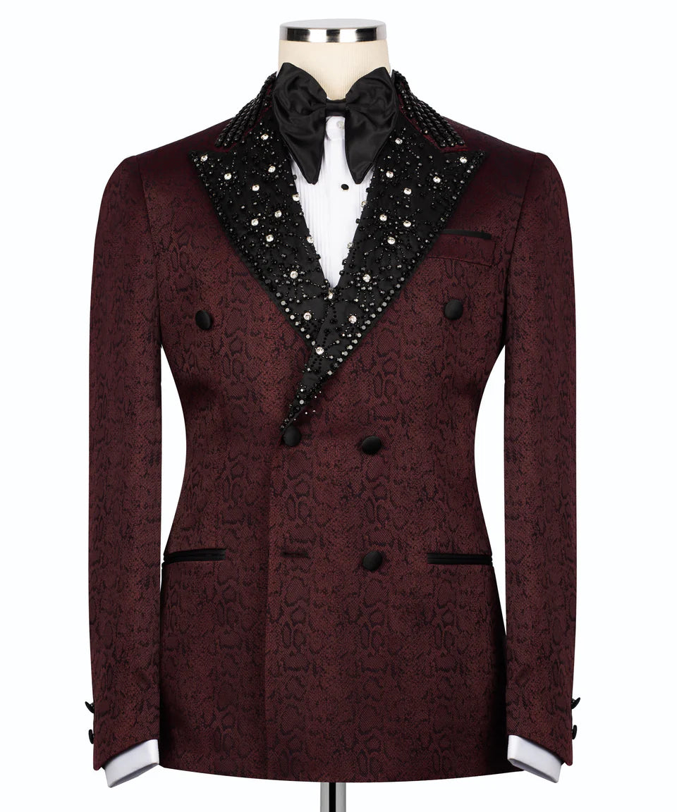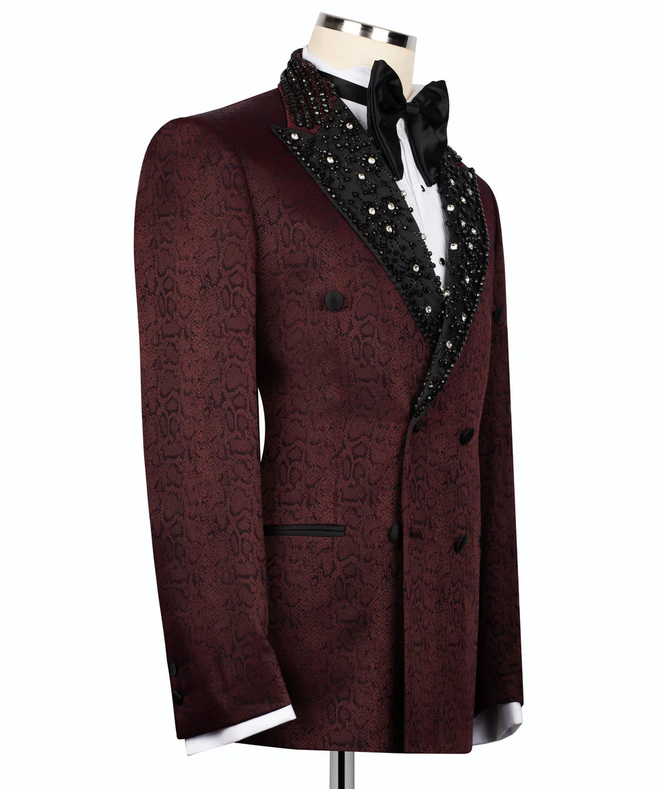 Two-Tone Burgundy & Black Embellished Tuxedo | Black Tuxedo Style - Costum Tuxedo | Black Tuxedo Style
