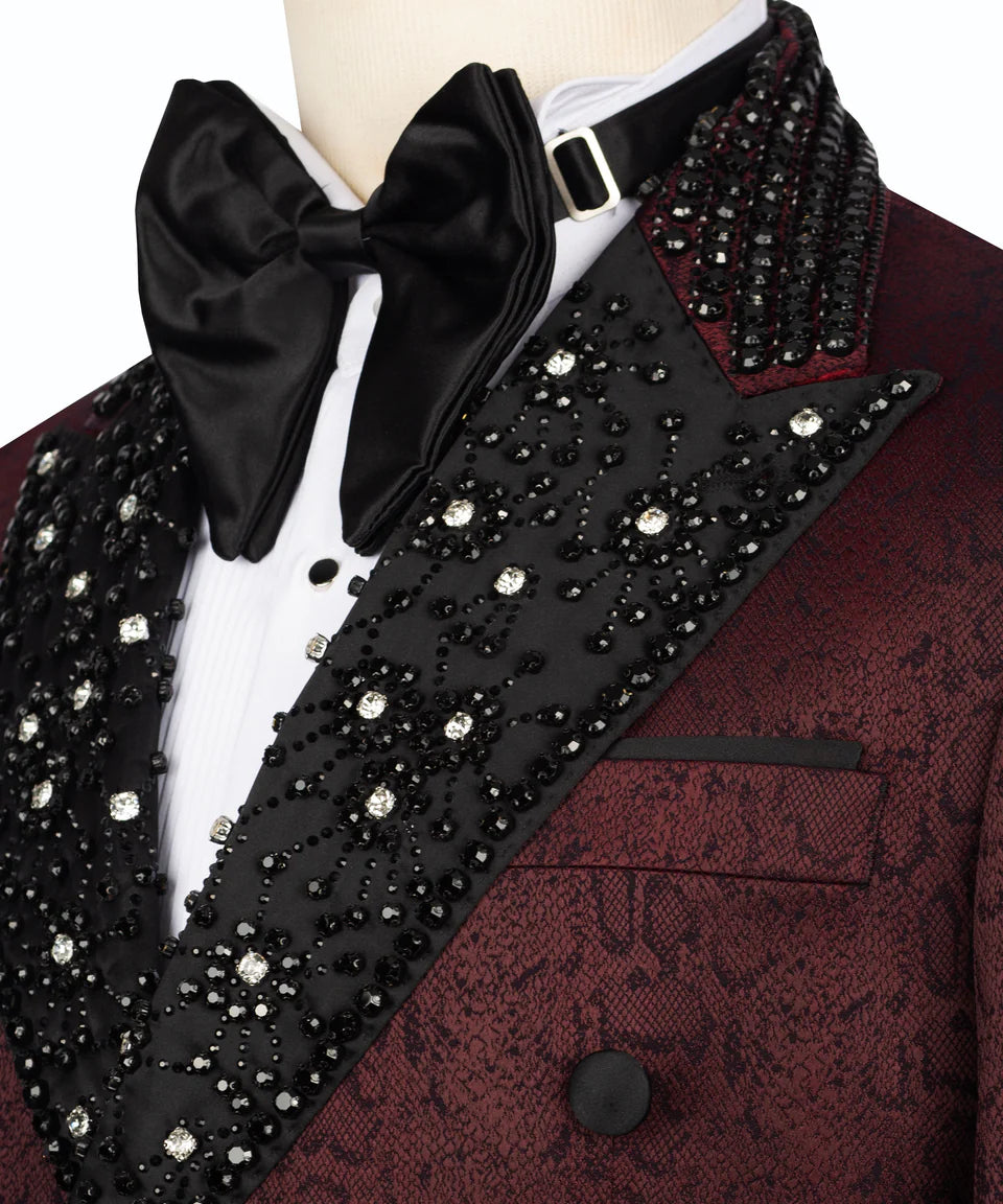 Two-Tone Burgundy & Black Embellished Tuxedo | Black Tuxedo Style - Costum Tuxedo | Black Tuxedo Style Two-Tone Burgundy & Black Embellished Tuxedo | Black Tuxedo Style - Costum Tuxedo | Black Tuxedo Style