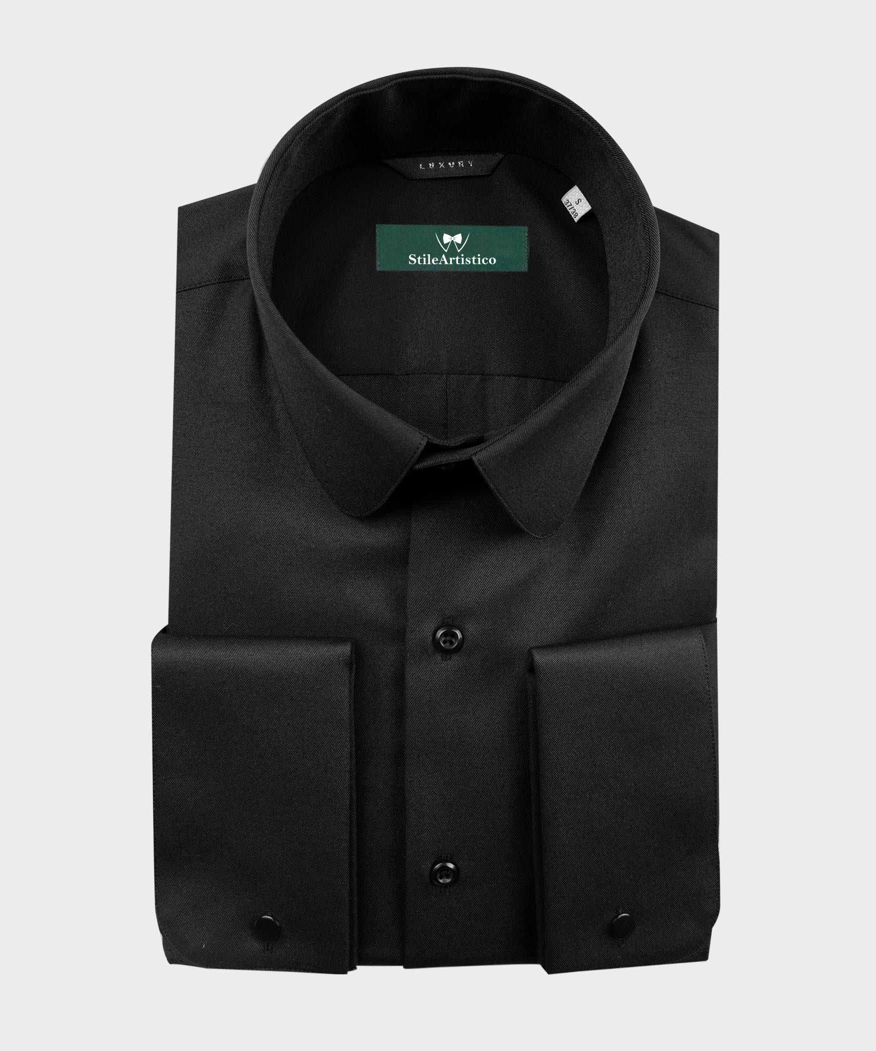 Camisa de manga larga con corte entallado de BlackTuxedoStyle Menswear. Esta moderna camisa está confeccionada en popelina elástica de alto rendimiento con un alto porcentaje de algodón para una comodidad transpirable y una sensación de suavidad excepcional. Ideal para ropa de negocios, este diseño cuenta con un innovador tratamiento de planchado fácil.