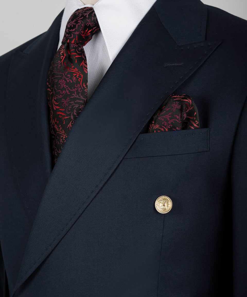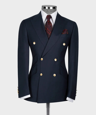 Black Tuxedo Style | Dark Navy Blue Double Breasted Suit with Gold Buttons