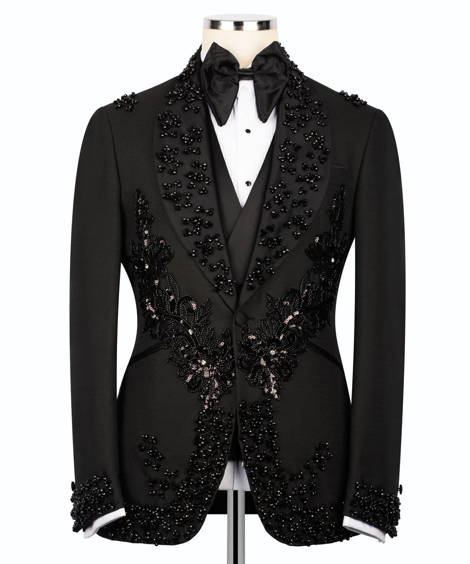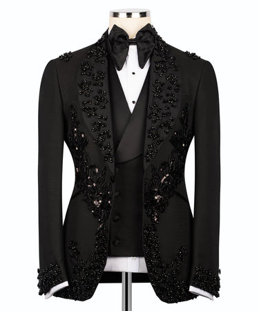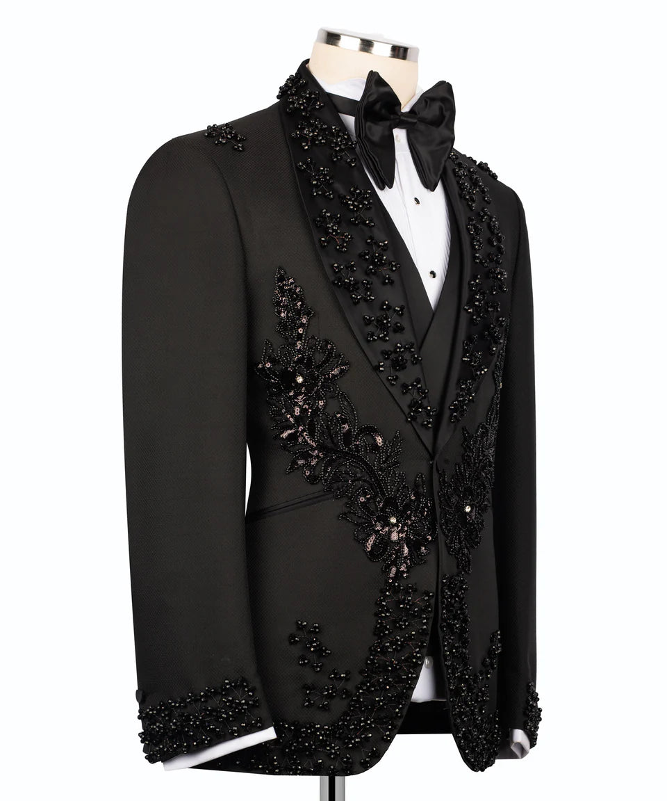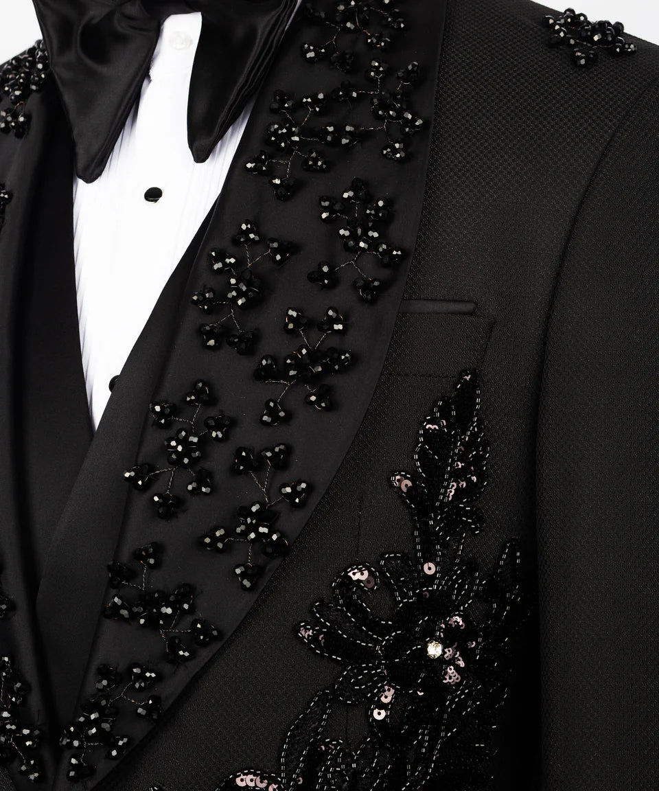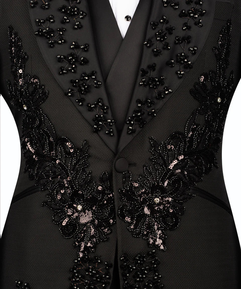 Luxurious Embellished Jacket & Trousers Black Tuxedo | Black Tuxedo Style