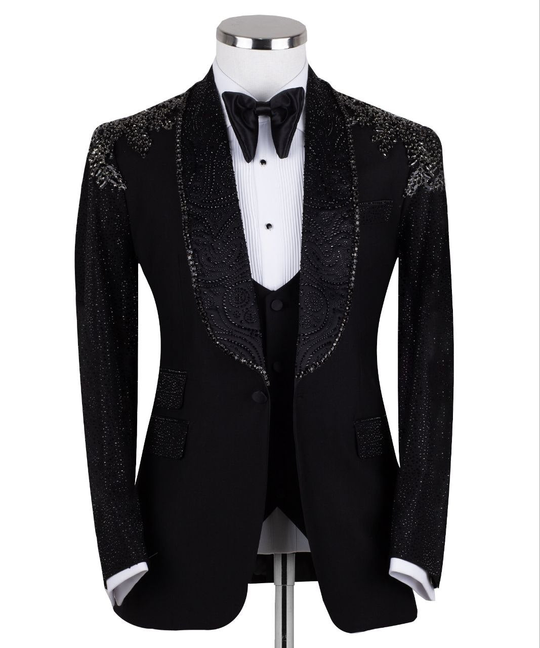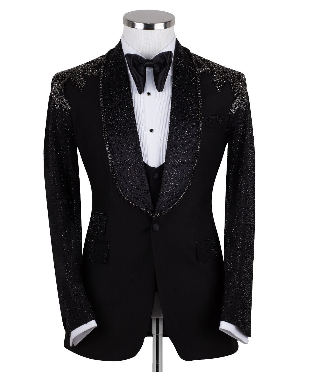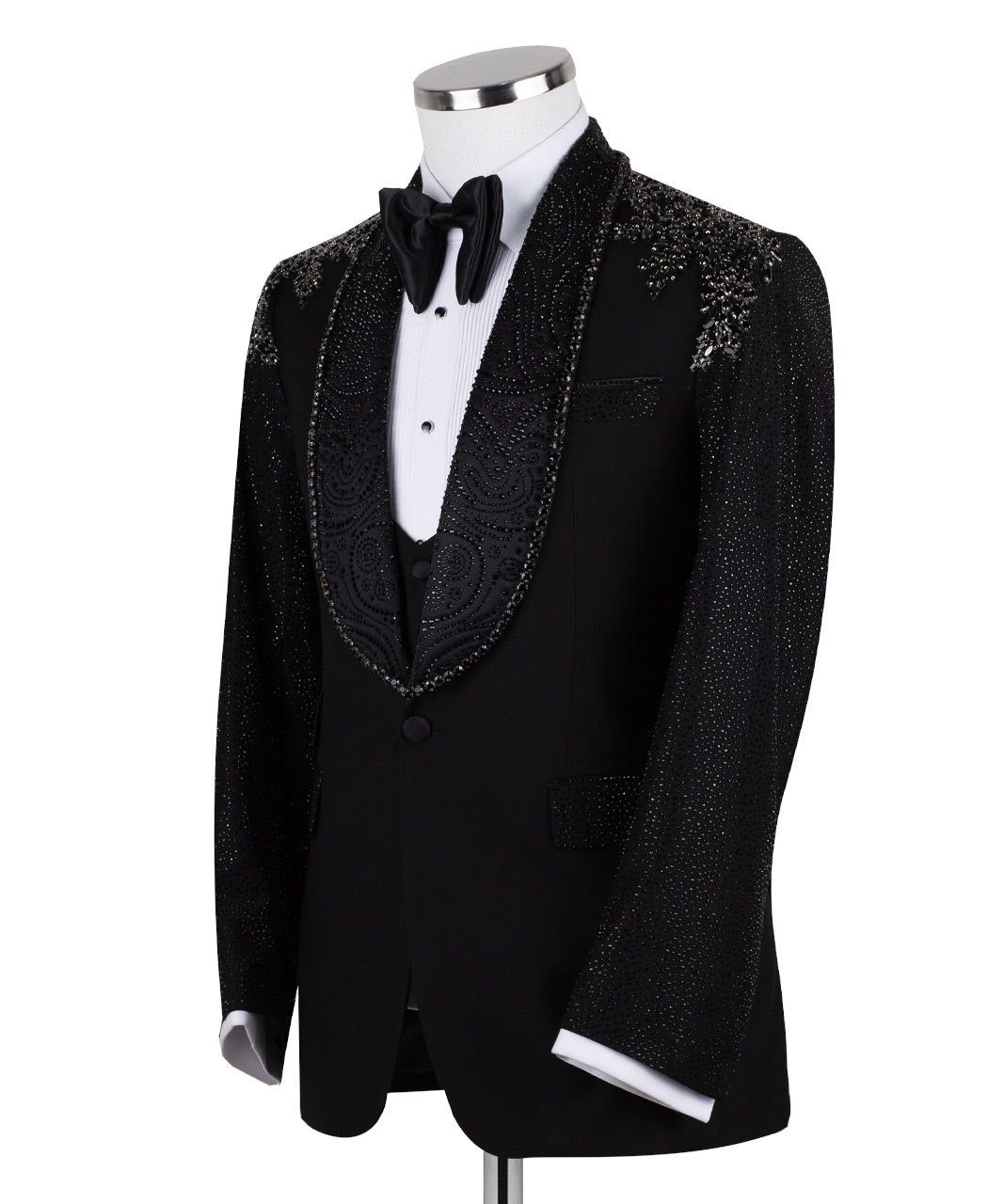 Steal the Spotlight: Hand-Embellished Crystal Tuxedo Jacket